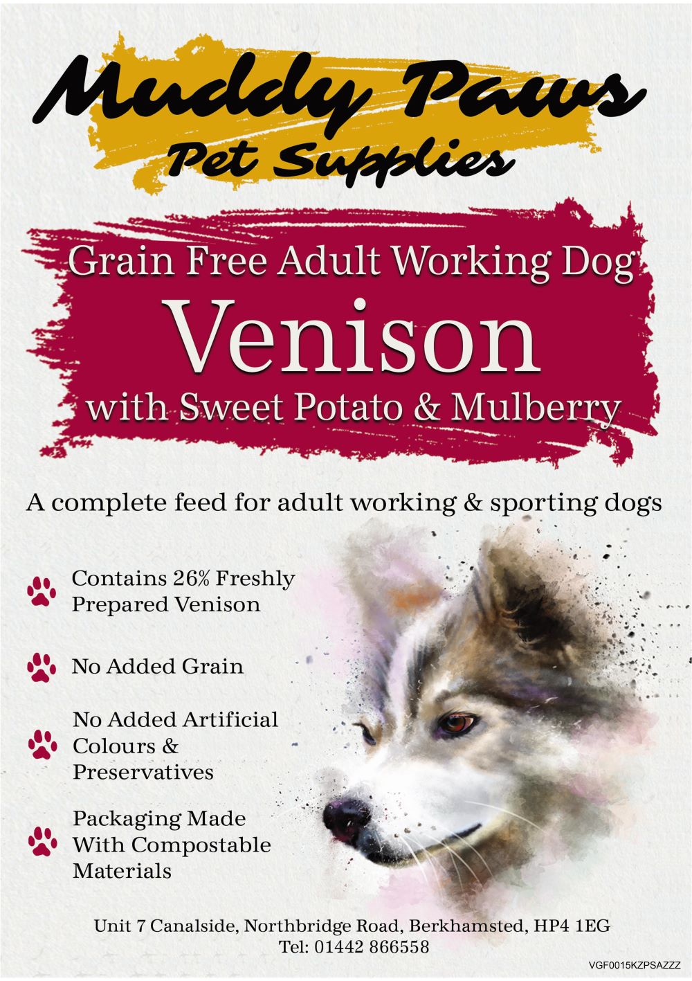 The finest Freshly Prepared venison is cooked at a gentle 82 degrees to protect the valuable protein, increase the digestibility and enhance the flavours. Venison is protein-rich and nutritionally wholesome. It is a good source of iron and B vitamins including B6 and B12. Mulberry is rich in iron and vitamin C, an antioxidant, which can help support the immune system.