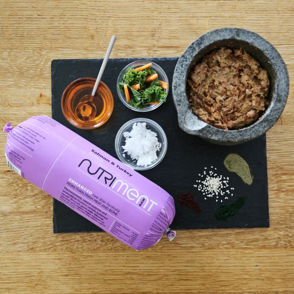 Nutriment's salmon and turkey formula is packed full of protein, essential fatty acids and other nutrients which are vital for a healthy and happy dog. Fish is an important part of any complete, biologically appropriate diet for dogs, and our responsibly sourced salmon is a great option for adding variety to your dog's diet. Formulated by our in-house canine nutritionists, our salmon formula contains carefully selected, biologically appropriate ingredients, which are free from grains, fillers and additives which can disrupt a dog's digestive system. This great-tasting recipe will be thoroughly enjoyed by your dog, and their digestive, skin, coat, heart and brain health will be promoted due to the nutritional profile of the natural ingredients.